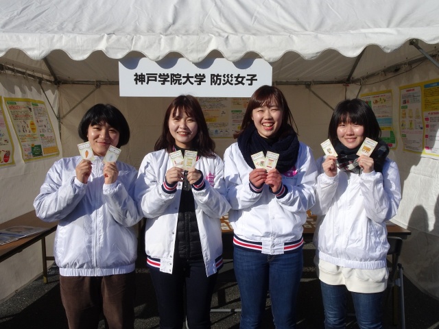 大学での講義や実習、東日本大震災被災地でのボランティア活動を通して、「女性の視点」を活かした防災の必要性を強く感じ、平成26 年6月に神戸学院大学生が「防災女子」を結成。