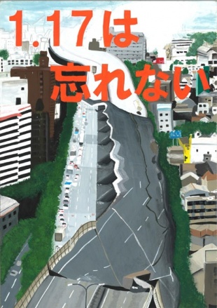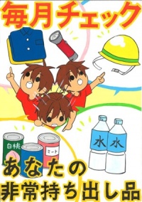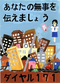 平成26年度「防災力強化県民運動」ポスターコンクール受賞作品 (中・高校生部門) ひょうご安全の日推進県民会議会長(知事)賞 奥野 久美子さん (私立甲南女子中学校3年) 人と防災未来センター長賞 清水 まりなさん (兵庫県立龍野北高等学校1年) 佳作 荒田 直樹さん (加古川市立陵南中学校2年) 青木 遥香さん (兵庫県立兵庫工業高等学校2年) 岸本 麻未さん (兵庫県立兵庫工業高等学校2年) 入選 石川 佳奈さん (神戸市立上野中学校1年) 金澤 帆夏さん (高砂市立荒井中学校1年) 山口 純奈さん (南あわじ市立三原中学校1年) 山崎 歩美さん (高砂市立荒井中学校1年) 市川 春月さん (高砂市立荒井中学校2年) 奥田 香穂さん (播磨町立播磨中学校2年) 田中 日悠海さん (兵庫県立龍野北高等学校1年) 岡本 千明さん (兵庫県立姫路工業高等学校2年) 左官 歩乃香さん (兵庫県立津名高等学校2年) 松山 紗弥さん (兵庫県立津名高等学校3年) 関連ページ