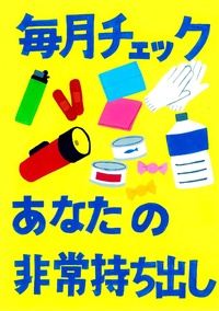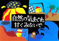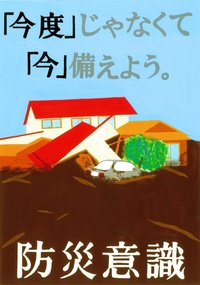 平成29年度「防災力強化県民運動」ポスターコンクール受賞作品(中・高校生部門) ひょうご安全の日推進県民会議会長(知事)賞 横山 希 さん (加古川市立加古川中学校1年) 人と防災未来センター長賞 比企 智花 さん (西宮市立浜脇中学校2年) 佳作 沖中 優奈 さん (姫路市立大的中学校1年) 德平 凪紗 さん (兵庫県立龍野北高等学校1年) 油谷 未来 さん (兵庫県立龍野北高等学校3年) 橋本 正也 さん (兵庫県立神戸甲北高等学校3年) 入選 久原 万由子 さん (加古川市立氷丘中学校1年) 田村 涼菜 さん (西宮市立浜脇中学校1年) 福原 憲大 さん (加古川市立氷丘中学校1年) 森本 実玖 さん (加古川市立中部中学校2年) 今井 奏美 さん (加古川市立氷丘中学校3年) 岩堀 真央 さん (明石市立大久保中学校3年) 縄間 結衣 さん (加古川市立氷丘中学校3年) 小河 美希 さん (兵庫県立龍野北高等学校1年) 高井 杏珠 さん (兵庫県立姫路工業高等学校1年) 竹原 空 さん (兵庫県立姫路工業高等学校2年) 中山 ほのか さん (兵庫県立龍野北高等学校2年) 関連ページ